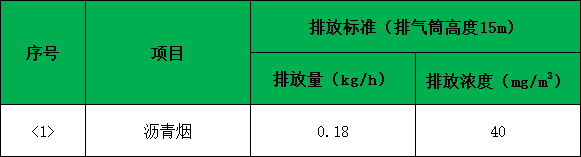 瀝青廢氣排放標準執行《大氣污染物綜合排放標準》(GB16297-1996) 二級標準: