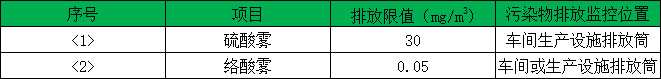 電鍍廢氣排放執行《電鍍污染物排放標準》(GB21900-2008)中新建企業大氣污染物排放限值,具體值見下表: