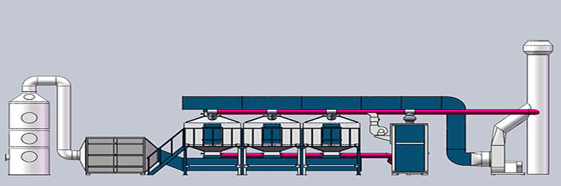 (2)完成解吸脫附以后活性炭吸附器Ⅰ進入待用狀態,待活性炭吸附器Ⅱ接近飽和時,系統再自動切換回來,同時對活性炭吸附器進行解吸脫附,如此循環工作。