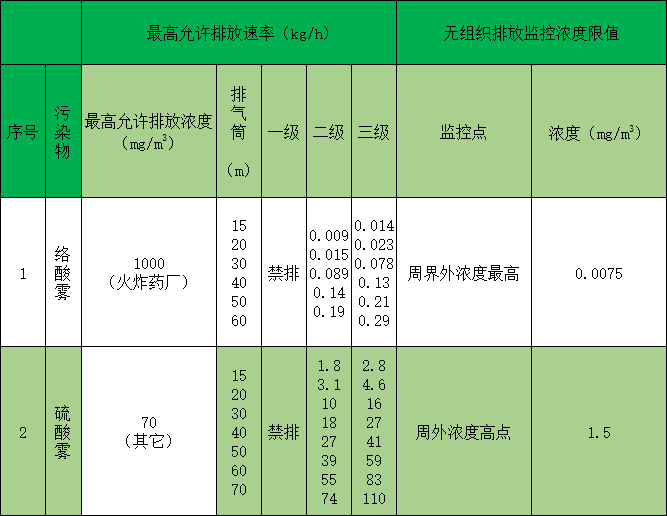 酸霧廢氣排放標準執行《大氣污染物綜合排放標準》(GB16297-1996) ,執行標準如下: